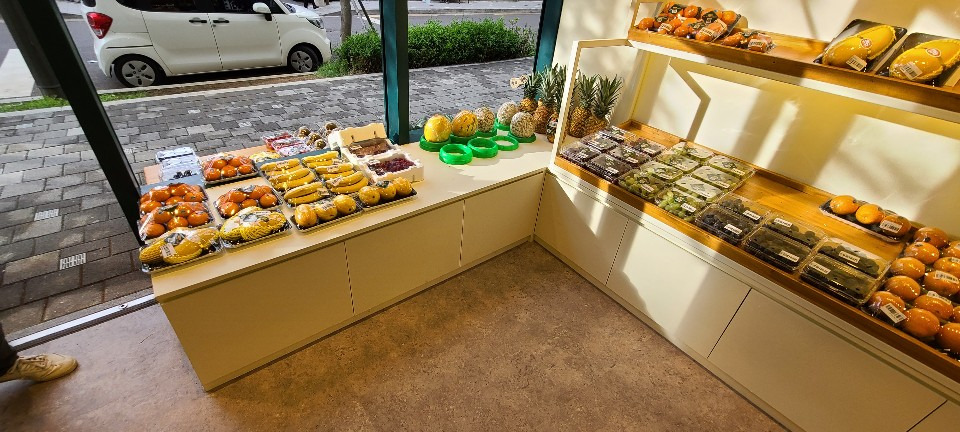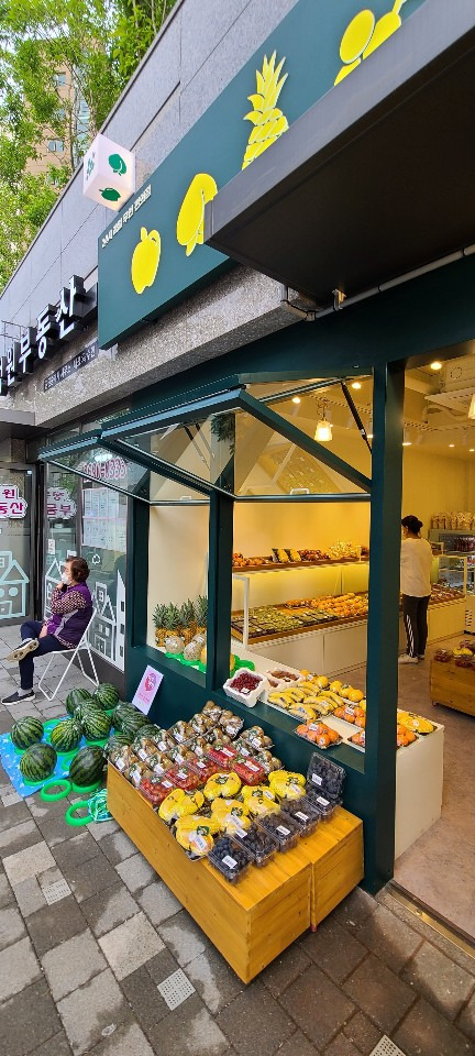 서울 목동 과일가게 인테리어 8평 시공현장 홍보영상 홈코디 분석 내용 무인상점으로 키오스크 설치 벽체는 도장 과일진열대는 각파이프로 뼈대을 제작후 삼나무 집성목으로 바구니 제작 진열대는 LED조명 바닥은 데코타일시공 외부는 갈바시공 창문은 유압쇼바을 달아서 두번 접히게 제작 가마찌도어 제작 빠른시공과 저렴한 가격 리뷰 0 포토 리뷰만 보기 목록