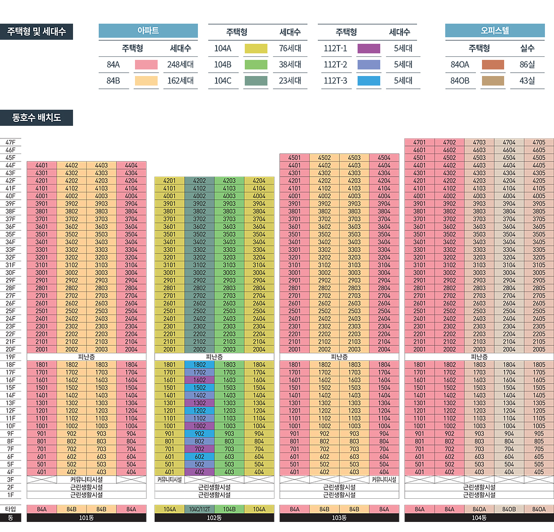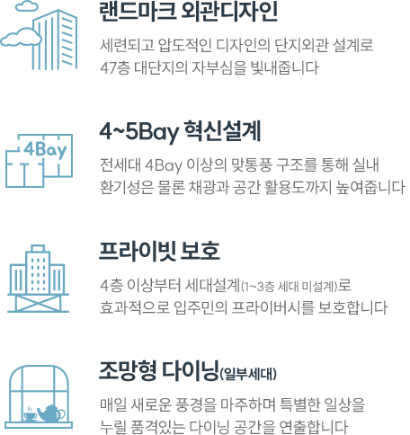대전 유성 하늘채 하이에르 는 유성구 봉명동 543-1 일원, 약 4,756평 부지에 들어서는 초고층 복합단지입니다. 건폐율 69.68%, 용적률 649.25%를 바탕으로 지하 4층~지상 47층, 4개 동 규모로 계획되었고, 아파트 562세대와 오피스텔 129실, 근린생활시설이 한 곳에 모여 원스톱 라이프를 구현합니다.